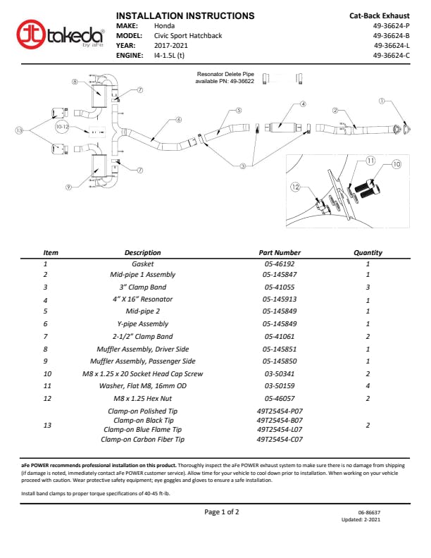 Dual 4-1/2" Diameter Carbon Fiber Exhaust Tips: Finishing off this exhaust system are dual 4-1/2" diameter carbon fiber 304 stainless steel clamp-on exhaust tips. The tips features an aFe POWER logo for a unique style.