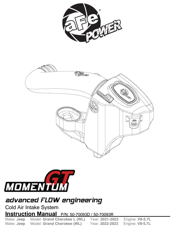 Momentum GT Cold Air Intake System w/ Pro 5R Filter Jeep Grand Cherokee (WL) 22-24 V8-5.7L HEMI