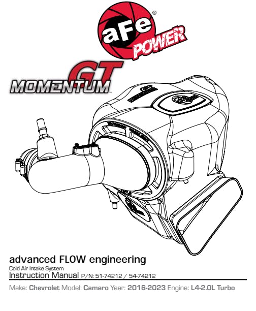 Momentum GT Cold Air Intake System w/ Pro 5R Filter Chevrolet Camaro 16-23 L4-2.0L (t)