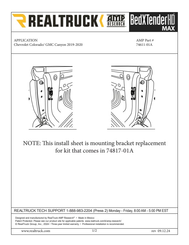 BedXtender Bracket Kit fits 2019-2020 Chevrolet Colorado/GMC Canyon