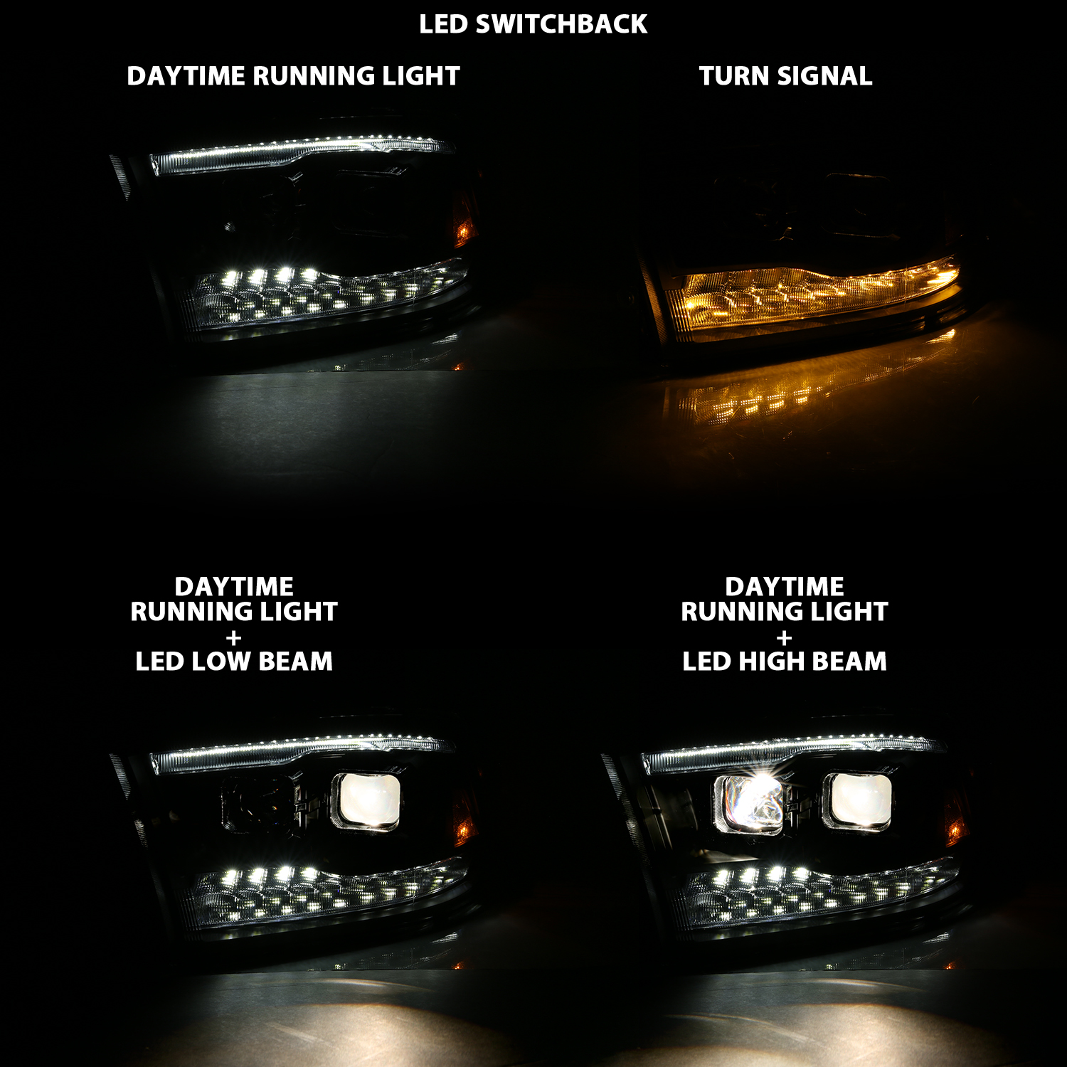 Projector Headlight Set; w/Switchback; Black w/Amber; Pair;