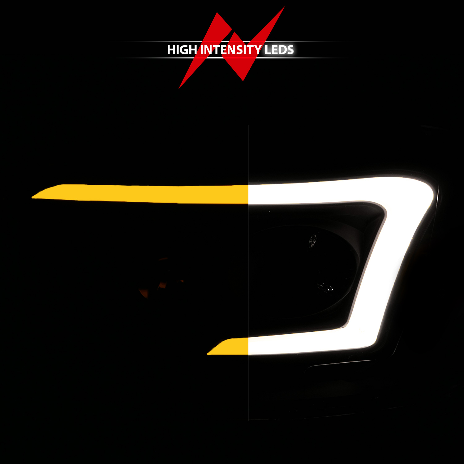 Crystal Headlight Set; Clear Lens; Black Housing; w/Light Bar Switchback; Pair;