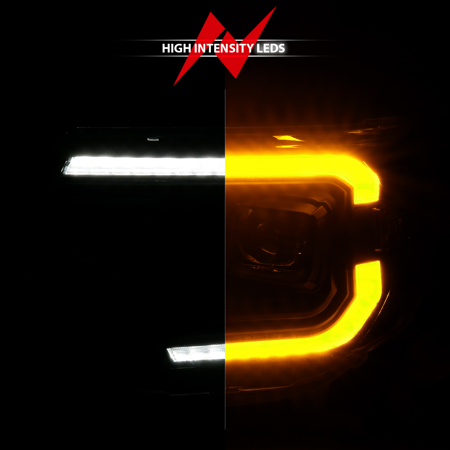 Projector Headlight Set; w/Light Bar Switchback; Black Housing;