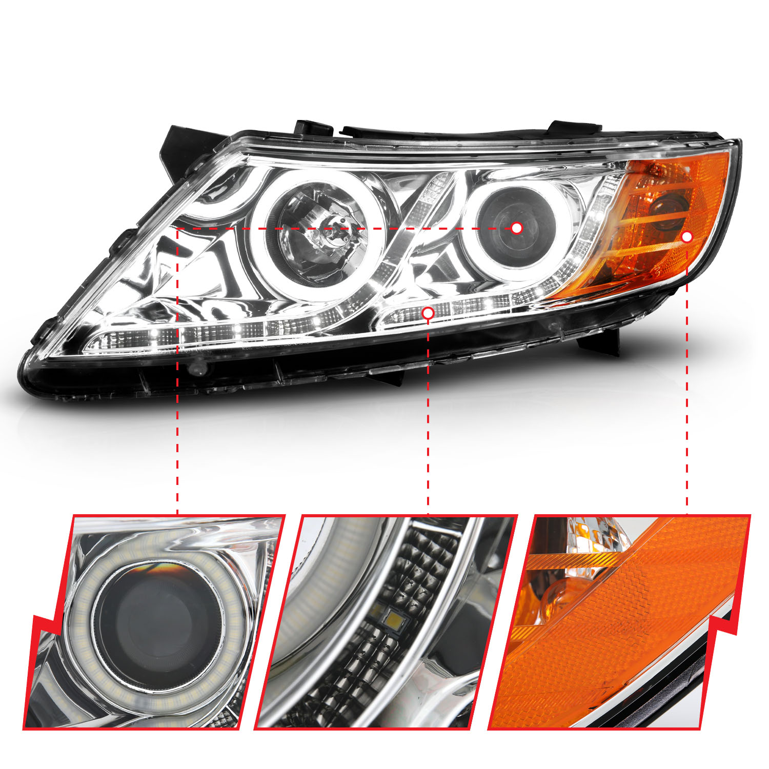 Projector Headlight Set, w/Halo, Clear Lens, Chrome Housing, CCFL, . Guaranteed To Improve Your Vehicles Appearance. Rigorously Tested For Fit And Function. Simple Plug And Play. No Modifications Required. Easy Installation Using Common Hand Tools. Uses Stock Mounting Locations And Hardware. D.O.T. Compliant To S.A.E. Standards. Sold As A Pair. Does Not Fit Hybrid Models.