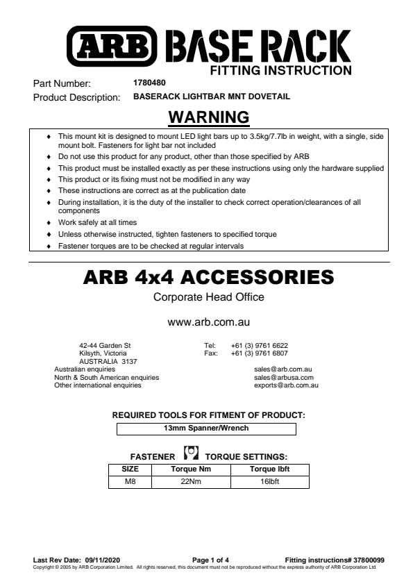 suitable for attaching single bolt, end-mount light bars and work lights along the dovetail of the BASE Rack