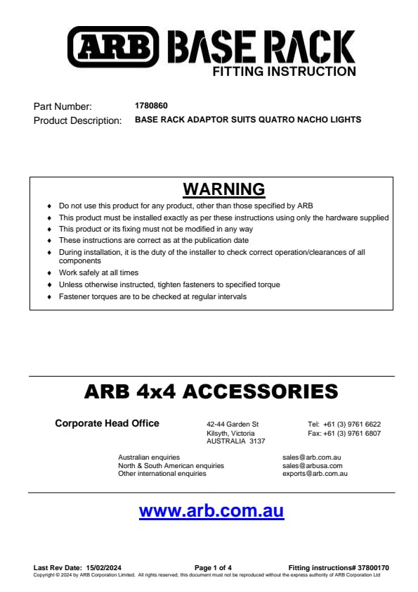 ARB BASE Rack Light Adaptor Kit allows you to easily mount Nacho Quatro to your BASE Rack.