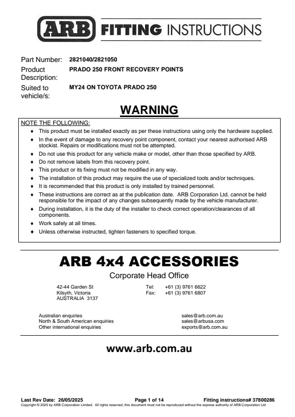 Strong, reliable recovery points are essential for off-road driving but the lack of industry standards regarding rated tow points has caused confusion among four wheel drivers for many years. With this in mind, ARB has sought to set an industry benchmark for how recovery points are designed, tested and selected by 4WDers. These issues include questionable and untested mounting locations, confusion regarding the selection of rated shackles and straps, and the inability of generic tow points to safely handle stresses generated by an angled pull during vehicle recovery. ARB aims to make it easy to find the correct recovery point for each individual customer with an engineered Recovery Train, in which each vehicle specific recovery point is rated for use with a 4.75t rated bow shackle and 17,600lbs snatch strap.
