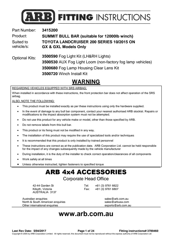 - Provisions For ARB Fog Lights