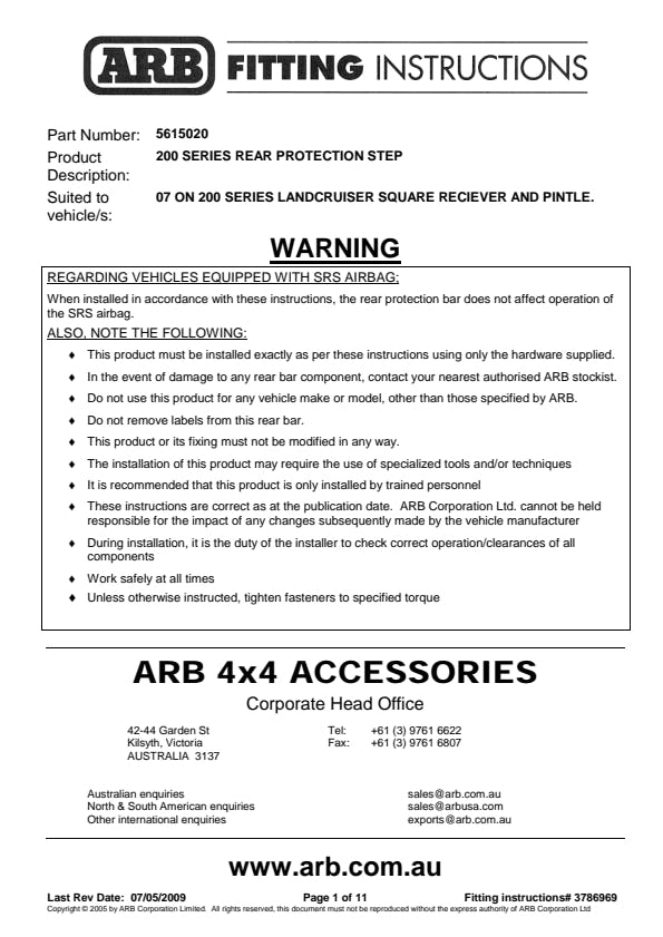 - Not compatible with OE mud flaps, use part 3500370 ARB Mudflap, x2 required