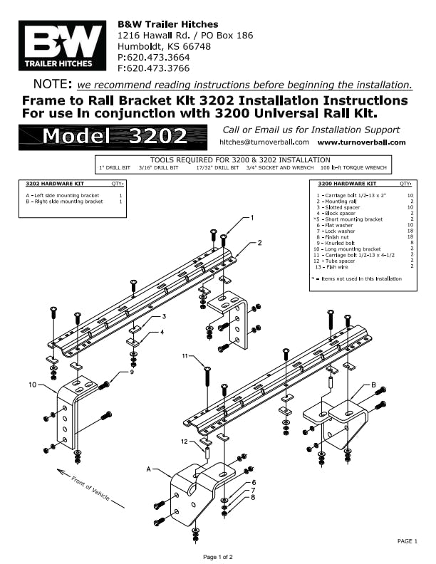 - Supplemental kit to provide attachment points for 5th Wheel hitch rails