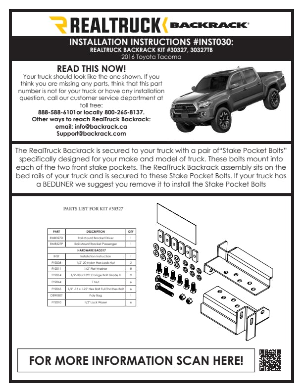 Installation Hardware Kit; Incl. Regular Brackets; For Backrack And Safety Rack ; Incl. Fasteners; Stake Pocket Hardware;
