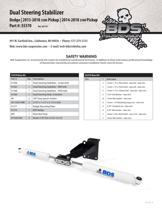 Improve the handling of your 2014-2018 Ram 2500 or 2013-2018 Ram 3500 by installing a BDS dual steering stabilizer mounting kit. Adding larger tires create additional forces on your trucks suspension and steering stabilizer shocks reduce bump steer and steering wheel feedback. BDS mounting brackets are made from high strength steel and are an easy bolt-on installation. By installing a steering stabilizer kit with your BDS lift kit you will reduce wear and maximize the life of your factory steering components.