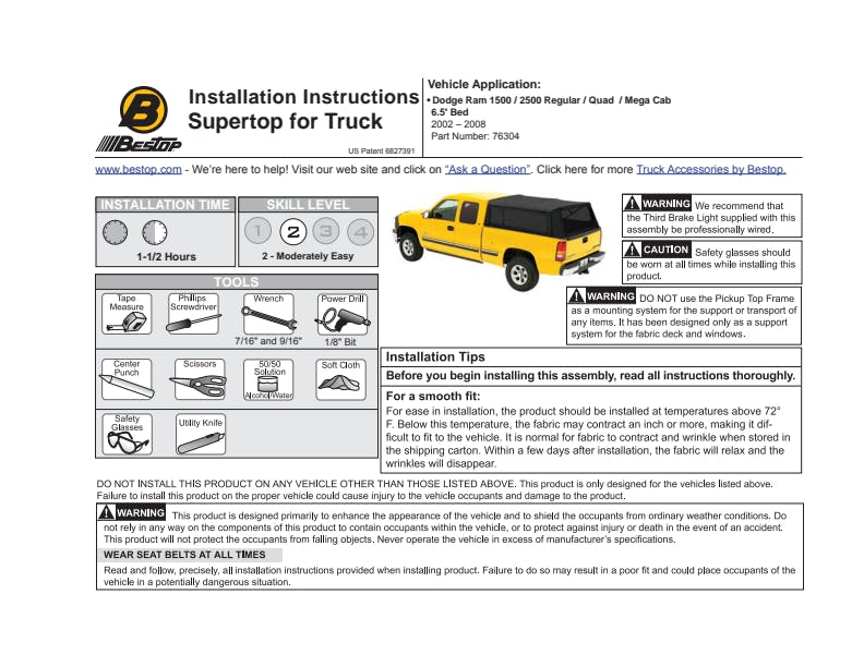 Built with the same core characteristics as Bestop's original version for Jeep, Supertop for Truck provides easy collapsibility and one-of-a-kind styling. Supertop for Truck takes truck bed coverage and storage to a new level by offering a more versatile, adaptable and cost effective alternative to fiberglass bed shells. Made with our proven Black Diamond fabric that has excellent resistance to UV fading or mildewing in wet climates. Window panels zip in, zip out quickly so the top can be folded down like a convertible top providing 100% access to the bed.