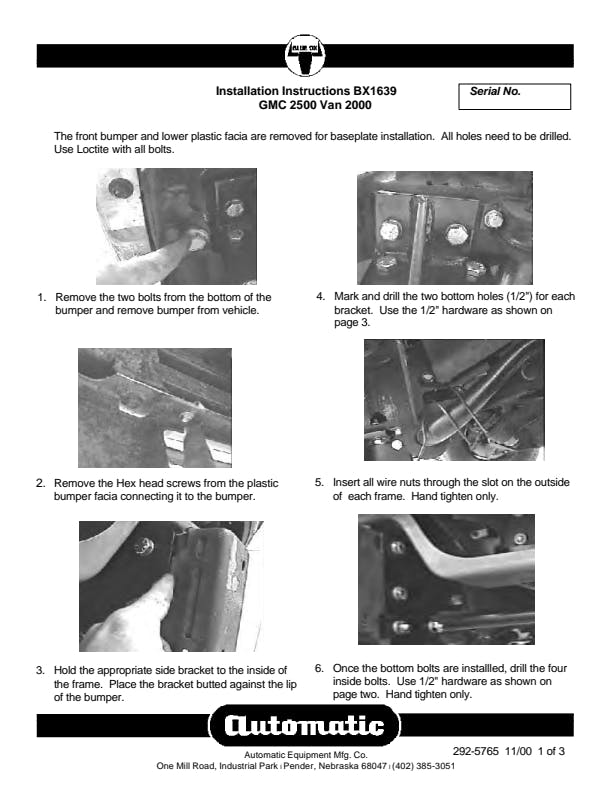 Please read BOTH these Installation Instructions and the General Information sheet prior to installing or operating this equipment. Blue Ox® towing products and accessories are intended to be installed by Blue Ox® Dealers who are familiar with our products and have the equipment and knowledge necessary to do “fit work”. Many Blue Ox® baseplates are designed to use existing holes and hardware to mount the baseplate to the towed vehicle. Even though bolts are there, do not assume they are adequate for baseplate mounting. Always use the hardware supplied in the hardware kit and existing hardware as specified in the installation instructions.