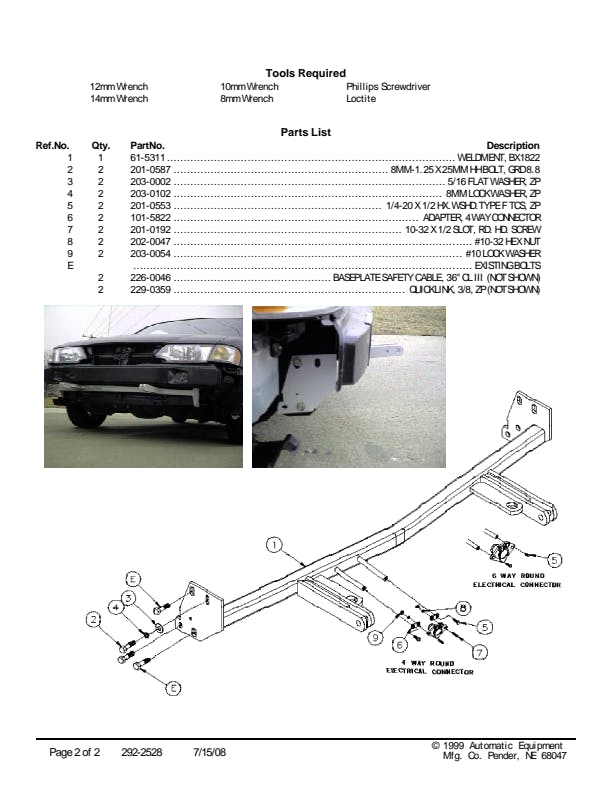 Please read BOTH these Installation Instructions and the General Information sheet prior to installing or operating this equipment. Blue Ox® towing products and accessories are intended to be installed by Blue Ox® Dealers who are familiar with our products and have the equipment and knowledge necessary to do “fit work”. Many Blue Ox® baseplates are designed to use existing holes and hardware to mount the baseplate to the towed vehicle. Even though bolts are there, do not assume they are adequate for baseplate mounting. Always use the hardware supplied in the hardware kit and existing hardware as specified in the installation instructions.