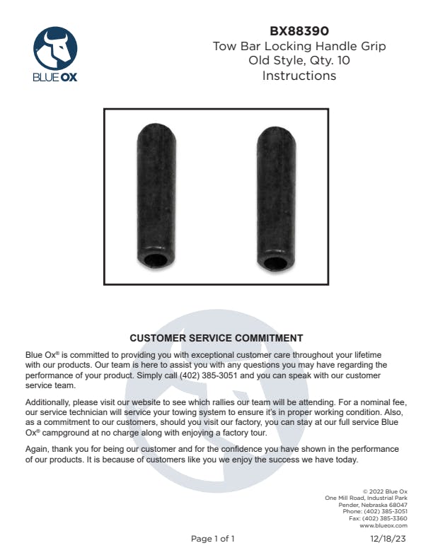 Replacement lock handle grip intended to be used with the Blue Ox Aventa LX and Alpha tow bars.| Attributes | |