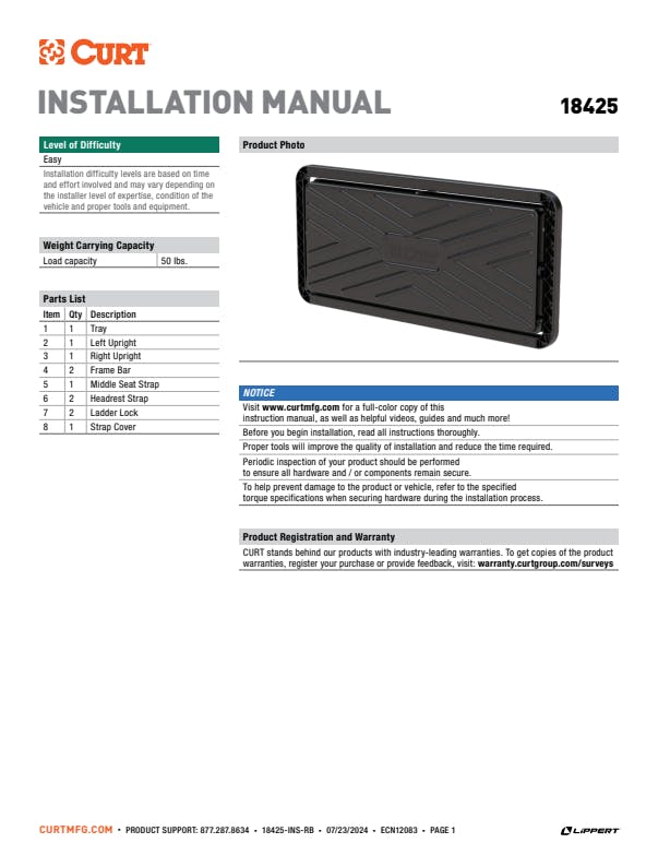 CURT 18425 Pakka Cargo Caddie Seat Back Trunk Organizer Tray, 34" x 14"