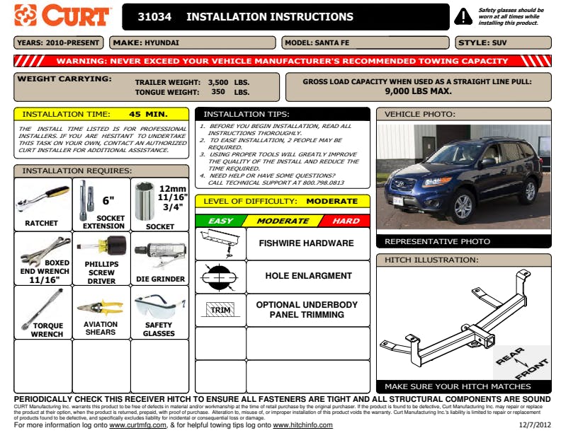 CURT 31034 2-Inch Front Receiver Hitch, Select Hyundai Santa Fe
