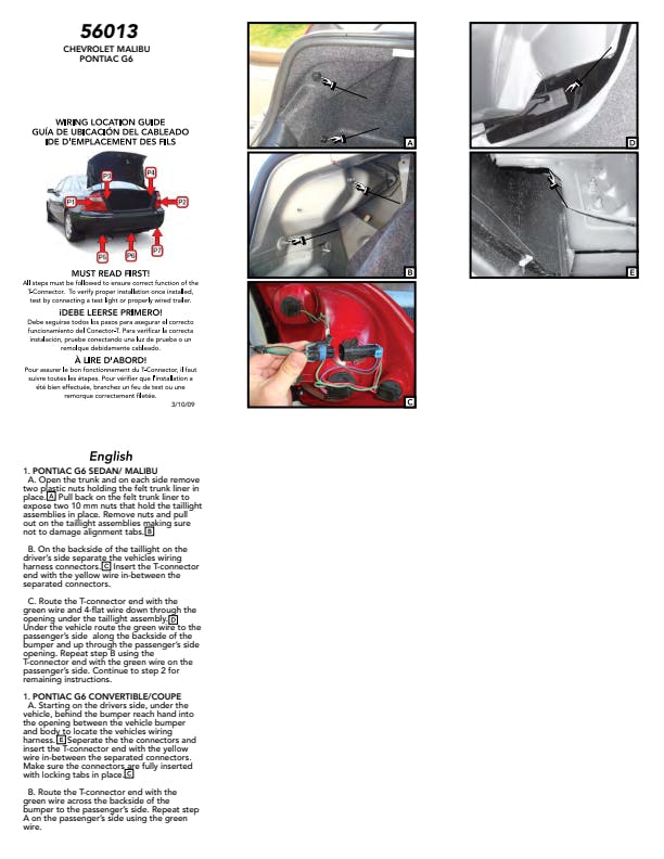 If your vehicle is not equipped with wiring for towing a trailer, CURT custom wiring is the ideal solution. A custom wiring harness -- also called a T-connector -- is a simple, plug-and-play electrical device that plugs into your automotive electric system and provides a standard, universal trailer wiring connection. This is done using two or more vehicle-specific, OEM-compatible connectors to plug into the taillight assembly, eliminating the need for cutting, splicing and soldering during installation. Custom wiring harnesses are made vehicle-specific, and while they are not available for all vehicles, they do offer one of the fastest, easiest and most secure ways to wire a vehicle for towing. This particular plug-in harness provides a 4-way flat connector socket and is designed to be a custom wiring harness to fit certain years of the Chevy Malibu and Pontiac G6 (to verify your vehicle compatibility, see application info). It comes with all necessary wiring components to establish a reliable trailer wiring connection, as well as a dust cover to keep the connector clean when not in use. You have a picture in mind of your next destination -- maybe it's the boat landing at your favorite fishing spot, maybe it's a campsite that overlooks one of nature's masterpieces, or maybe it's the next big jobsite. However, turning that picture into a reality takes more than just daydreaming. It takes a solid connection and the right amount of power. CURT custom wiring is made with some of the most sophisticated technology in the industry and is designed to install with ease, giving you a long-lasting electrical connection for your towing hitch setup.