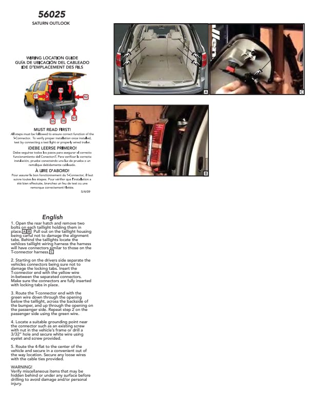 If your vehicle is not equipped with wiring for towing a trailer, CURT custom wiring is the ideal solution. A custom wiring harness -- also called a T-connector -- is a simple, plug-and-play electrical device that plugs into your automotive electric system and provides a standard, universal trailer wiring connection. This is done using two or more vehicle-specific, OEM-compatible connectors to plug into the taillight assembly, eliminating the need for cutting, splicing and soldering during installation. Custom wiring harnesses are made vehicle-specific, and while they are not available for all vehicles, they do offer one of the fastest, easiest and most secure ways to wire a vehicle for towing. This particular plug-in harness provides a 4-way flat connector socket and is designed to be a custom wiring harness to fit certain years of the Saturn Outlook (to verify your vehicle compatibility, see application info). It comes with all necessary wiring components to establish a reliable trailer wiring connection, as well as a dust cover to keep the connector clean when not in use. You have a picture in mind of your next destination -- maybe it's the boat landing at your favorite fishing spot, maybe it's a campsite that overlooks one of nature's masterpieces, or maybe it's the next big jobsite. However, turning that picture into a reality takes more than just daydreaming. It takes a solid connection and the right amount of power. CURT custom wiring is made with some of the most sophisticated technology in the industry and is designed to install with ease, giving you a long-lasting electrical connection for your towing hitch setup.