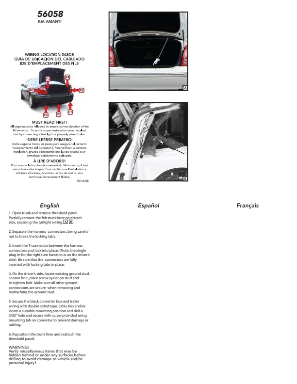 If your vehicle is not equipped with wiring for towing a trailer, CURT custom wiring is the ideal solution. A custom wiring harness -- also called a T-connector -- is a simple, plug-and-play electrical device that plugs into your automotive electric system and provides a standard, universal trailer wiring connection. This is done using two or more vehicle-specific, OEM-compatible connectors to plug into the taillight assembly, eliminating the need for cutting, splicing and soldering during installation. Custom wiring harnesses are made vehicle-specific, and while they are not available for all vehicles, they do offer one of the fastest, easiest and most secure ways to wire a vehicle for towing. This particular plug-in harness provides a 4-way flat connector socket and is designed to be a custom wiring harness to fit certain years of the Kia Amanti and Optima sedan (to verify your vehicle compatibility, see application info). It comes with all necessary wiring components to establish a reliable trailer wiring connection, as well as a dust cover to keep the connector clean when not in use. You have a picture in mind of your next destination -- maybe it's the boat landing at your favorite fishing spot, maybe it's a campsite that overlooks one of nature's masterpieces, or maybe it's the next big jobsite. However, turning that picture into a reality takes more than just daydreaming. It takes a solid connection and the right amount of power. CURT custom wiring is made with some of the most sophisticated technology in the industry and is designed to install with ease, giving you a long-lasting electrical connection for your towing hitch setup.