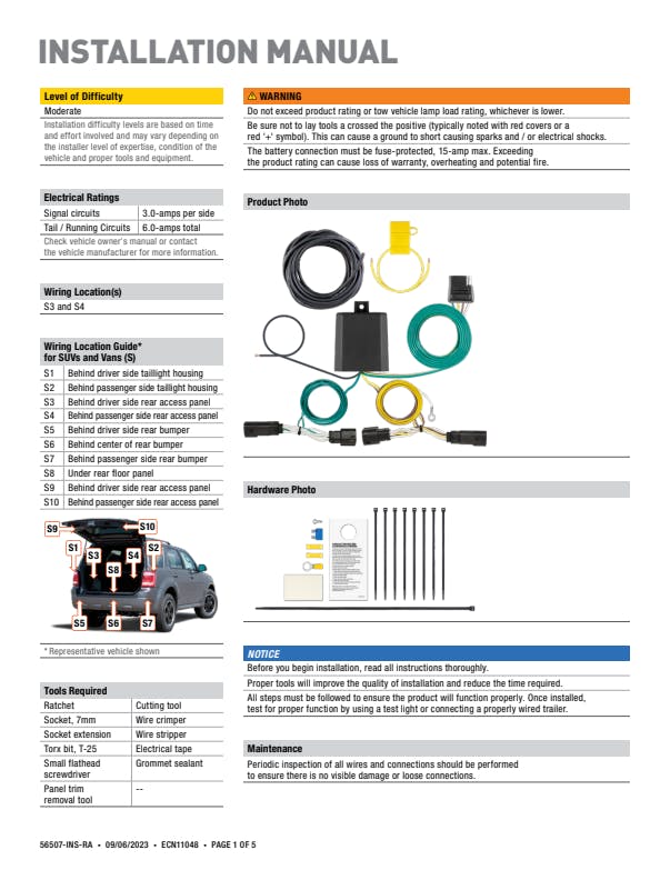 - Equipped with tail light converter for vehicle-trailer compatibility