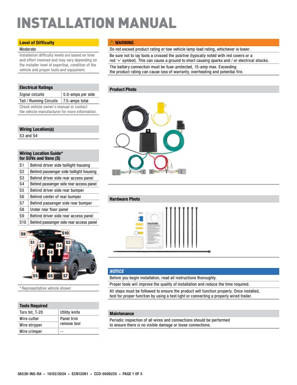 - Equipped with tail light converter for vehicle-trailer compatibility