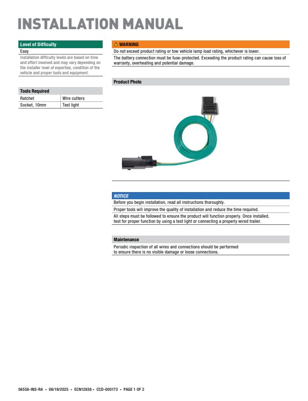 - Plugs into existing OEM vehicle socket to provide a 4-way flat socket
