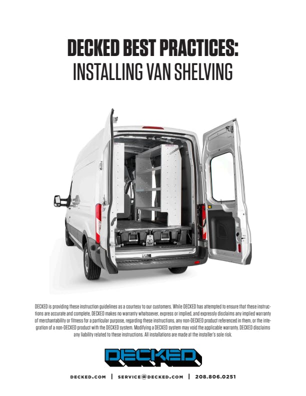 The DECKED in-vehicle storage system offers secure, weatherproof and organized storage with a sliding drawer toolbox system for cargo vans. 100% American made, the DECKED system features two secure, full bed-length drawers capable of carrying 200lb each that glide effortlessly on industrial-grade wheels beneath a 2,000lb payload-rated deck. Constructed from rugged High Density Polyethylene (HDPE) and steel, owners get ergonomic access to tools and equipment while maintaining full use of the cargo van floor's footprint. DECKED Cargo Van Storage Systems are perfect for contractors painters, carpenters, electricians. surveyors, plumbers and handyman services who need their cargo van to have secure storage bins that are easy to access. Toolbox drawers slide out tools, gear, and other items at waist height while still allowing full use of the van's cargo area. The system, once assembled, is easily installed and removed. Accessories are available for customizable storage. This system is compatible with Sprinter cargo vans manufactured by Mercedes-Benz, Freightliner and Dodge.