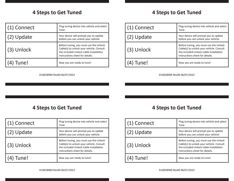 - Four preloaded tunes for Economy/Towing (87 Octane), Drive (87 Octane), Performance (91 Octane), and Extreme(91+ Octane)