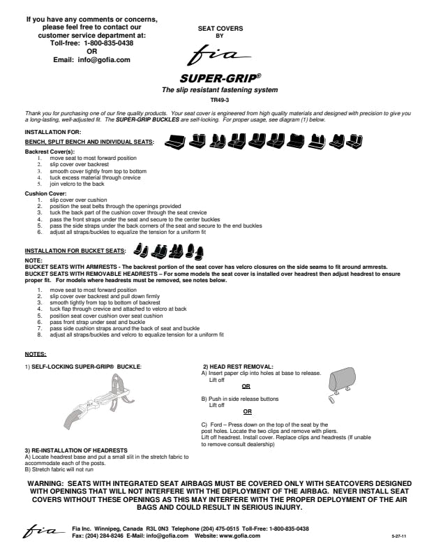 Fia is the original equipment standard for standard tweed fabric custom-fit truck seat covers. Engineered to meet or exceed vehicle manufacturer standards, Fia's advanced design creates a dynamic, state-of-the-art custom interior for your vehicle. Additionally, these Wrangler custom-fit seat covers are engineered from original saddle blanket material and install quickly and easily with Super-Grip, the slip-resistant fastening system using belt and buckle fasteners, zippers (on some models), and Velcro. Super-Grip slip-resistant fastening system is engineered to provide original equipment installation in minutes without the use of any tools. Multi-directional stretch polyester trim molds the seat cover to the contours of the seat. Velcro fasteners and a belt 'n buckle tightening system are the finishing touches that grip the cover to the seat.