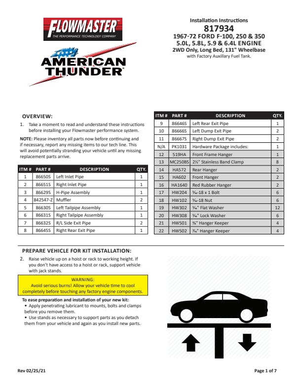 • Backed by Flowmaster’s Lifetime Limited Warranty