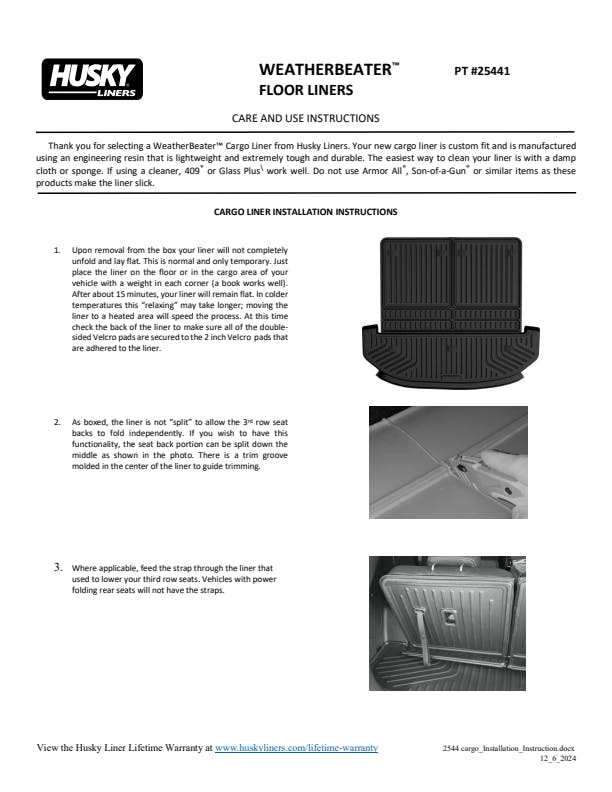 - WeatherBeater(TM) Liners offer protection that extends all the way to your rear seats. So go ahead, lift the seats and leave them up, load after load. Husky's got your floors, and your back, no matter what the road brings your way.