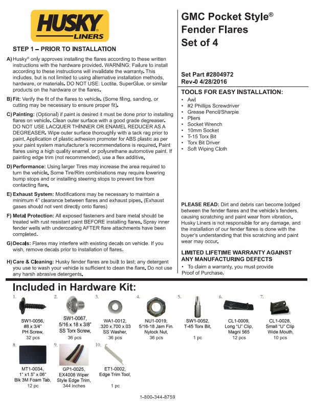 - Pocket Style Fender Flares are covered by Husky Liners Limited Lifetime Warranty, featuring Husky's legendary durability, so they're built to last. Proudly made in the USA with global materials.
