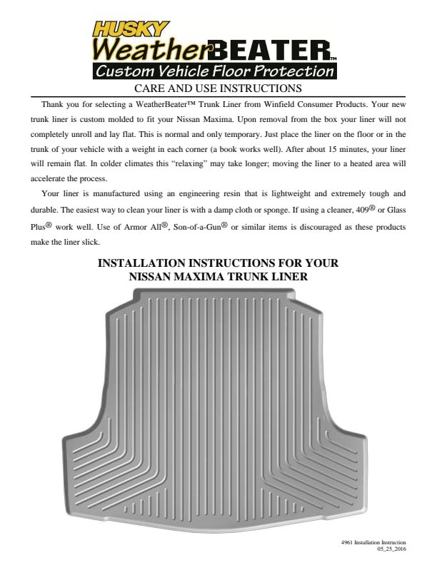 - WeatherBeater(TM) Liners offer protection that extends all the way to your rear seats. So go ahead, lift the seats and leave them up, load after load. Husky's got your floors, and your back, no matter what the road brings your way.