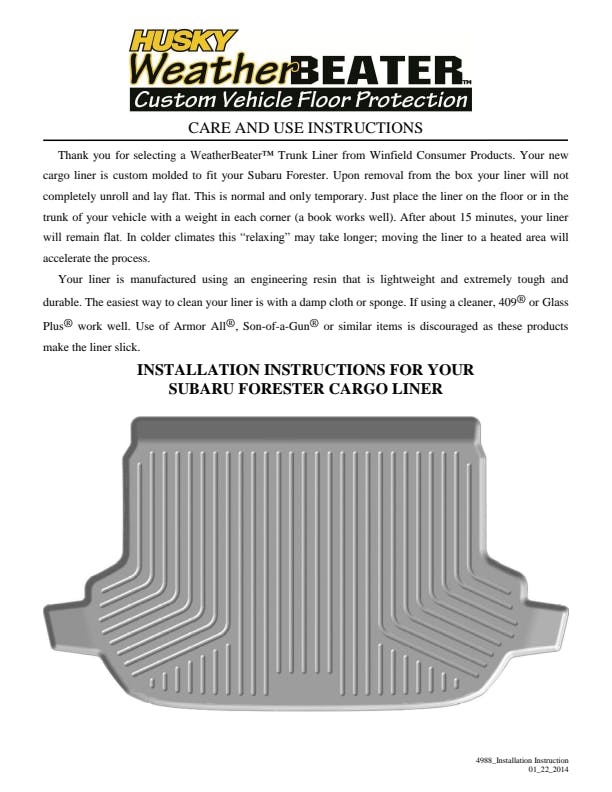 The original all-weather liner is ready, come hell or hot coffee. The Weatherbeater?s construction is a no-slip zone with zero edge curl, and its Stay Put Nibs keep it firmly anchored underfoot. It stands up to chemicals like gas, oil and battery acid, and stays tough and flexible, even under extreme temperatures. Its laser-scanned, FormFit Design? gives your truck, van or SUV an ultra-clean look with easy cleanup to match, while its patented, FormFit Edge? keeps spills contained, carpets unstained. It?s unbeatable Husky protection for life, warrantied the same. Proudly made in the USA.