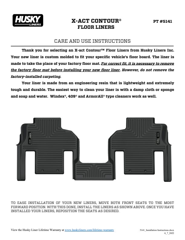 Nothing fits your vehicle better or protects longer than Husky X-act Contour?. These liners combine laser-scanned, exact fit with a no-slip, DuraGrip? surface and a softer feel. Plus, the rock-solid stability delivered by your vehicle?s factory retention posts, and our StayPut? Nibs for a no-slip, no-slide, surface with absolutely zero compromise in protection. They?re built to stand up to whatever you?re laying down? including chemicals like battery acid and oil, with our FormFit Edge? to keep whatever spills contained for easy cleanup. Available in black. Built for a lifetime of rugged abuse, warrantees the same.