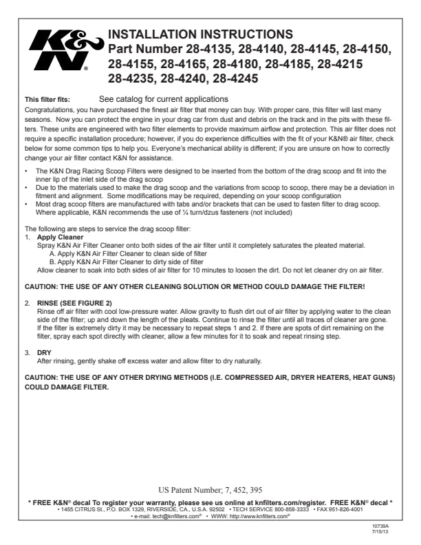 K&N Drag Racing Base Mount Scoop Filters - Now you can protect the motor in your drag car from dust and debris on the track and in the pits with this base mount scoop filter. Designed to fit specific scoop designs popular to drag racing today.