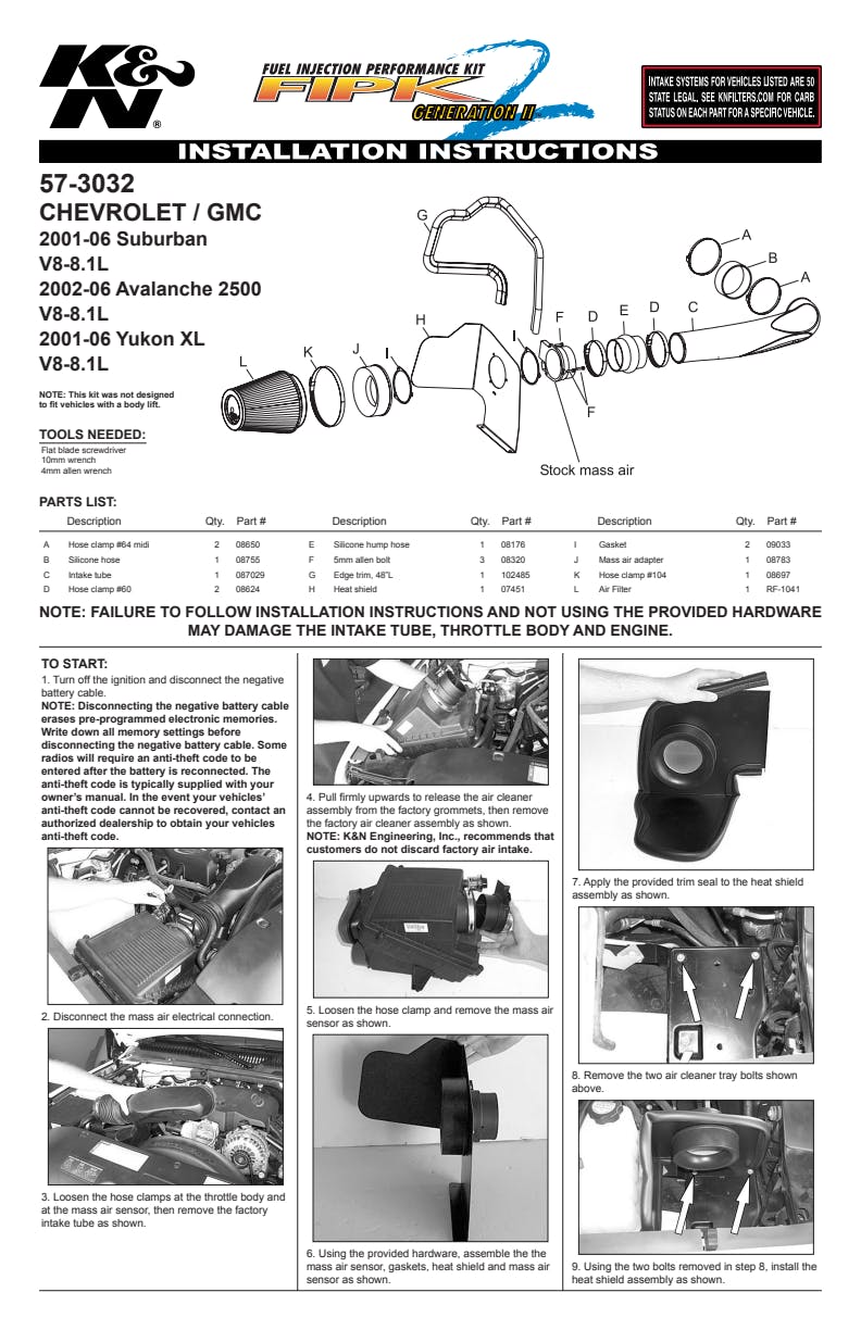 K&N's roto-molded cold air intake systems are guaranteed to provide an increase in horsepower and torque, and are protected by the K&N No-Hassle Lifetime Limited Warranty.