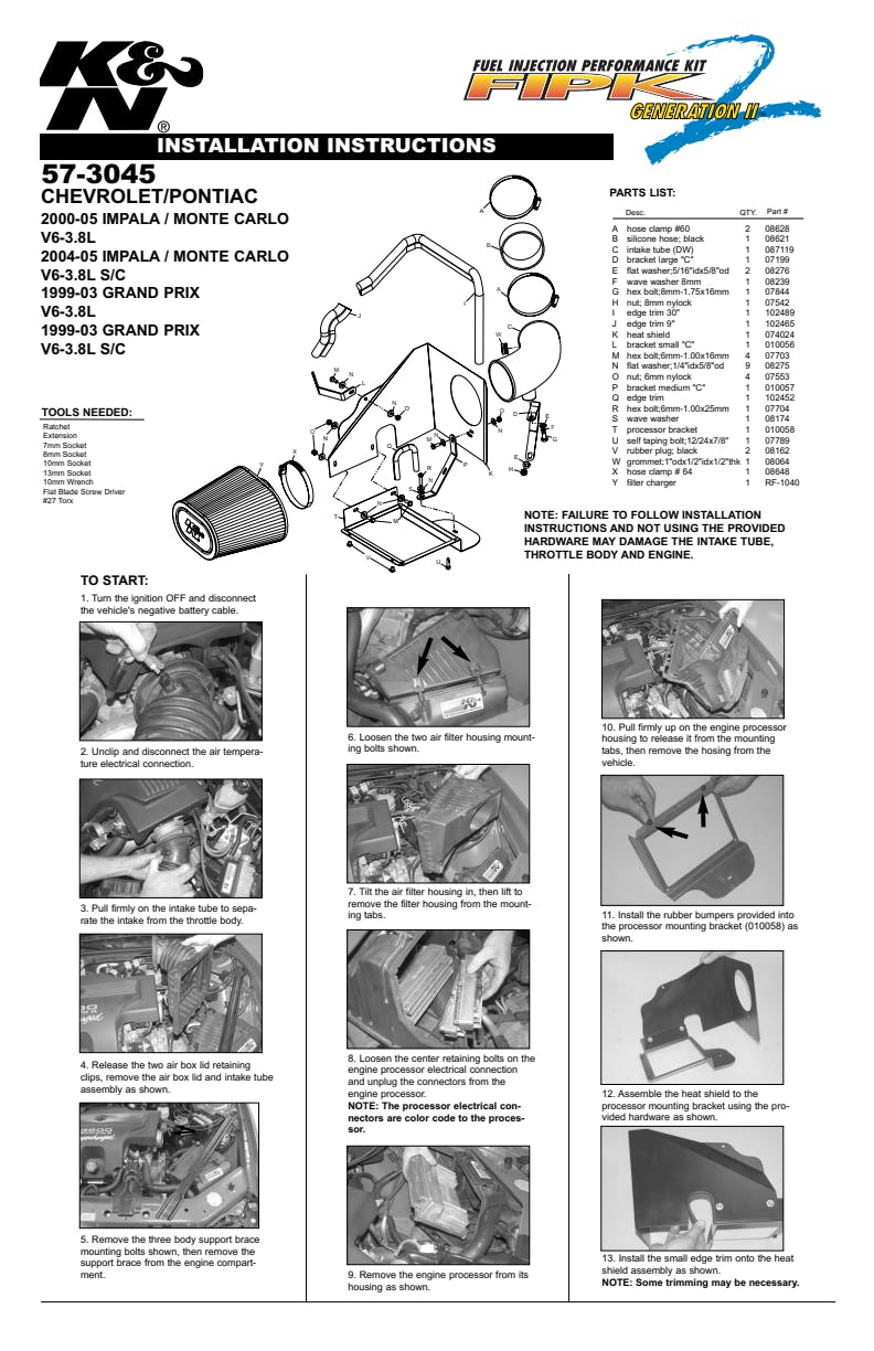 K&N's roto-molded cold air intake systems are guaranteed to provide an increase in horsepower and torque, and are protected by the K&N No-Hassle Lifetime Limited Warranty.