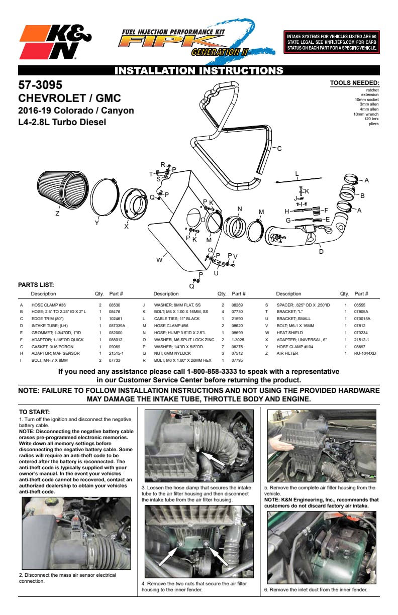 K&N's roto-molded cold air intake systems are guaranteed to provide an increase in horsepower and torque, and are protected by the K&N No-Hassle Lifetime Limited Warranty.