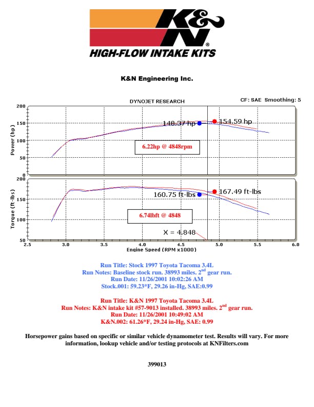 K&N's roto-molded cold air intake systems are guaranteed to provide an increase in horsepower and torque, and are protected by the K&N No-Hassle Lifetime Limited Warranty.