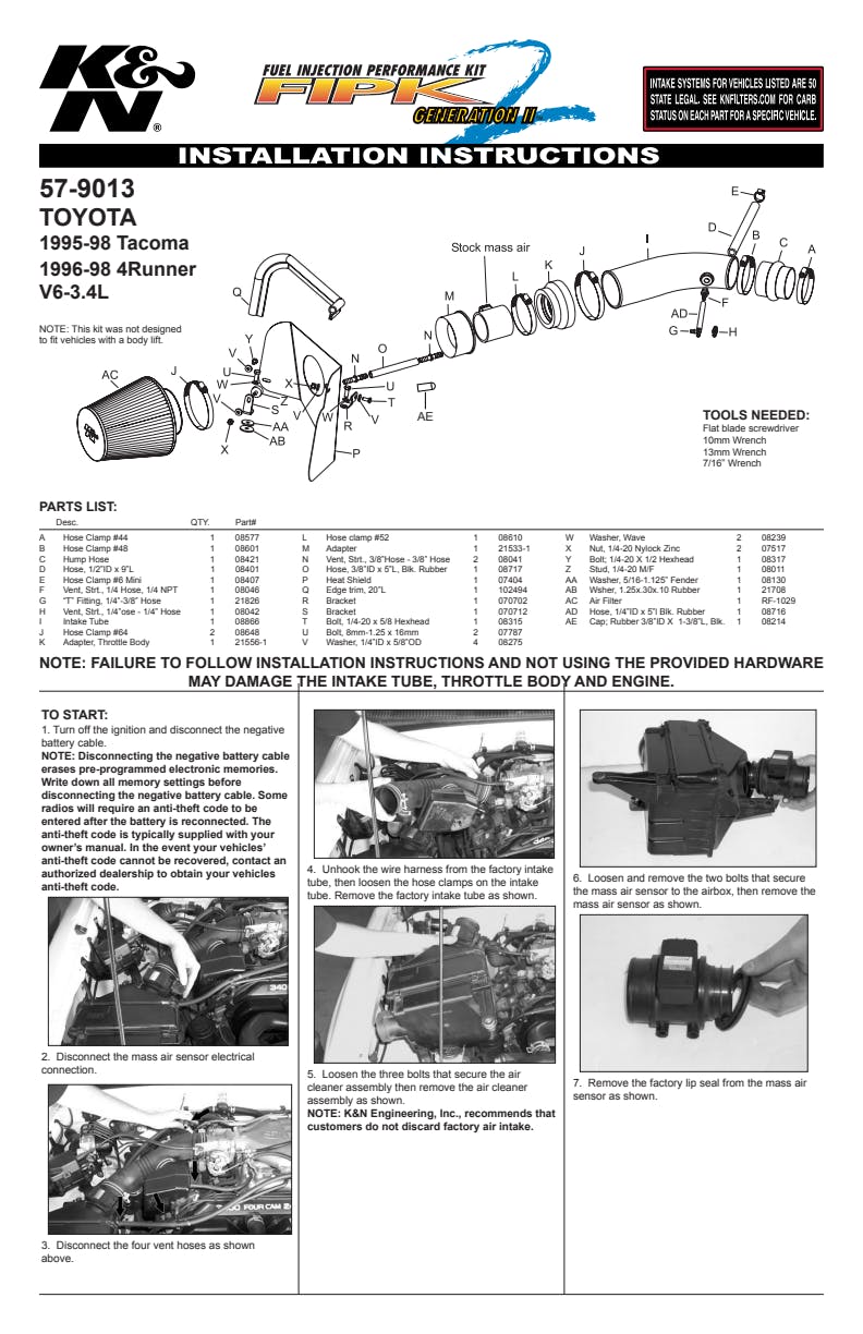 | Mass Air Flow Sensor Adapter Included |