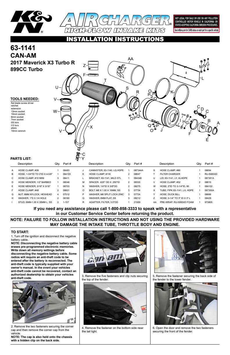 This K&N AirCharger air intake system replaces the restrictive factory air filter and air intake housing. K&N air intakes are designed to dramatically reduce intake restriction as they smooth and straighten air flow. This allows your engine to inhale a larger amount of air than the factory air filter assembly. More air means more usable power and acceleration throughout the engine's RPM range. This air intake comes with a K&N high-flow air filter which is protected from the elements with an enclosed filter housing. Air is directed through a custom-molded intake tube into the engine's throttle body for a guaranteed power gain. The oversized cone shaped air filter is washable and reusable. This air intake is relatively easy to install usually in 90 minutes or less. The tools needed are two torx screwdrivers (T30 and T15), a flat blade screwdriver, a wrench, and a ratchet set.