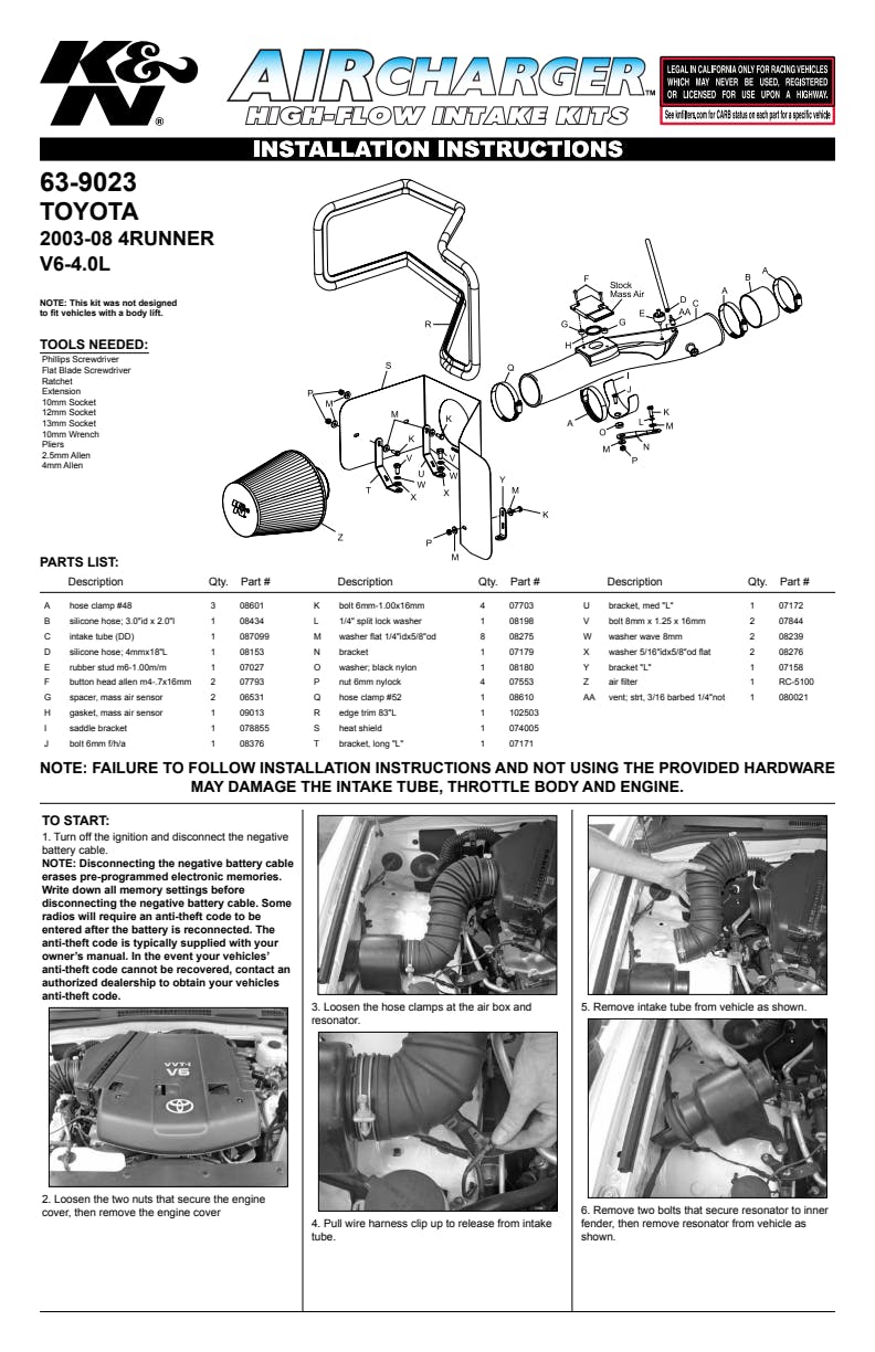 K&N's roto-molded cold air intake systems are guaranteed to provide an increase in horsepower and torque, and are protected by the K&N No-Hassle Lifetime Limited Warranty.