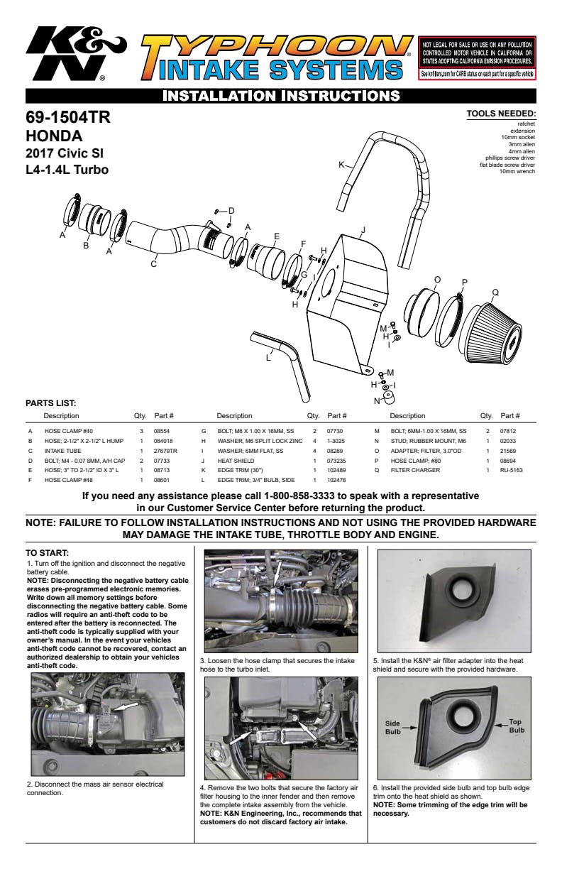 K&N's mandrel-bent aluminum cold air intake systems are guaranteed to provide an increase in horsepower and torque, and are protected by the K&N No-Hassle Lifetime Limited Warranty.
