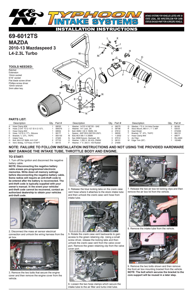 K&N's mandrel-bent aluminum cold air intake systems are guaranteed to provide an increase in horsepower and torque, and are protected by the K&N No-Hassle Lifetime Limited Warranty.