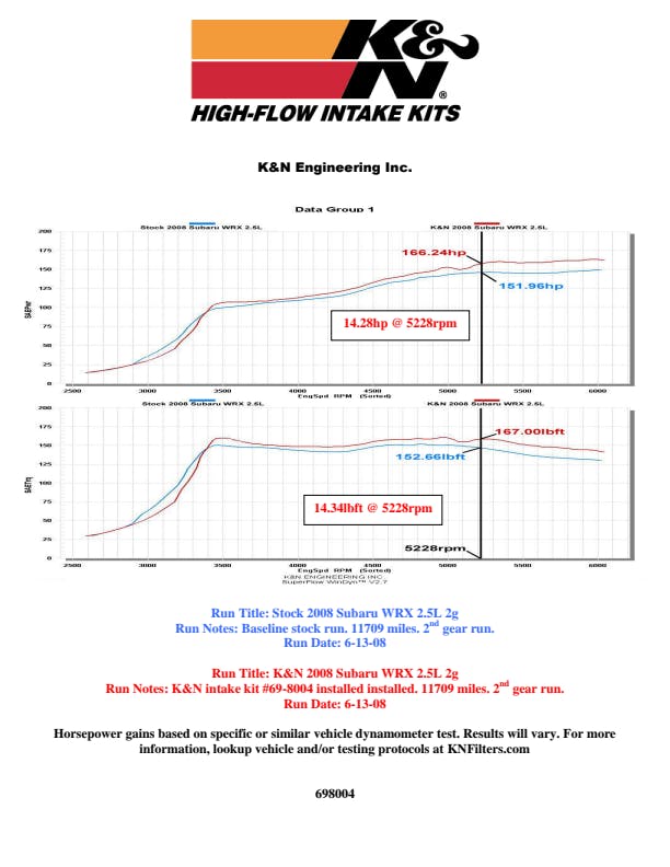K&N's mandrel-bent aluminum cold air intake systems are guaranteed to provide an increase in horsepower and torque, and are protected by the K&N No-Hassle Lifetime Limited Warranty.