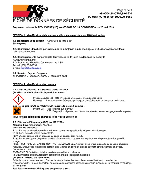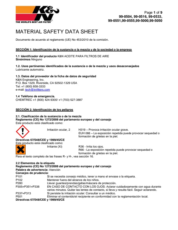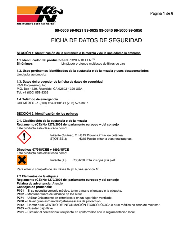 K&N Recharger Kit 99-5000 is designed to restore the performance of your K&N oiled cotton air filter, and includes a 6.5-ounce aerosol can of oil and a 12-ounce spray bottle of POWER KLEEN. POWER KLEEN industrial strength degreaser helps dissolve dirt, old filter oil, and other filter-clogging particulates, allowing them to be rinsed away easily with water. When used as directed, the included air filter oil remains suspended in the pleats of the cotton filter material, allowing for exceptional contaminant capture. View the complete cleaning instructions included in your kit.