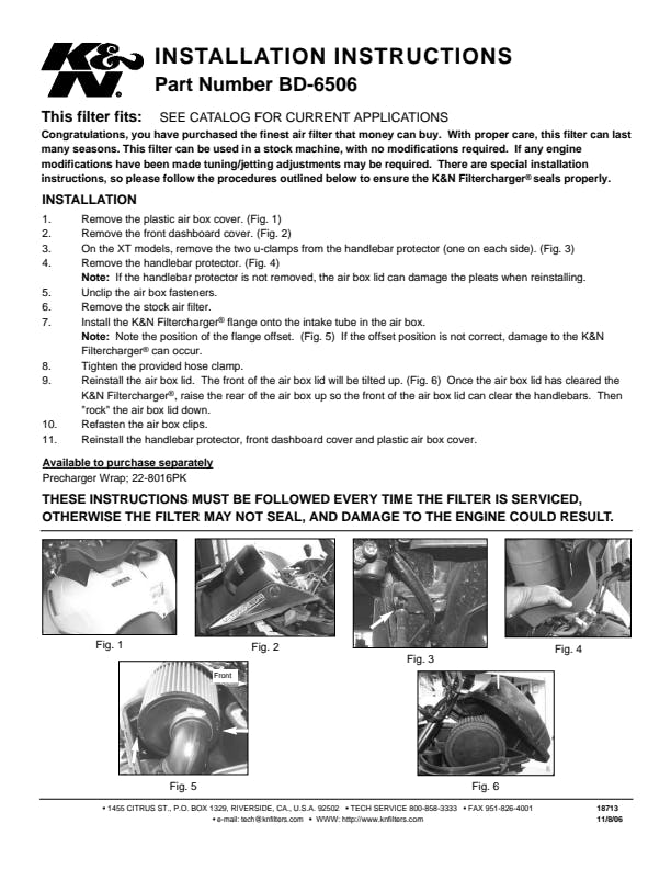 K&N Replacement Air Filters are ideal for extended use in dirty and dusty off-road riding and provide clean carburetion even at high altitude. K&N air filters are washable and reusable and provide high air-flow with excellent filtration.